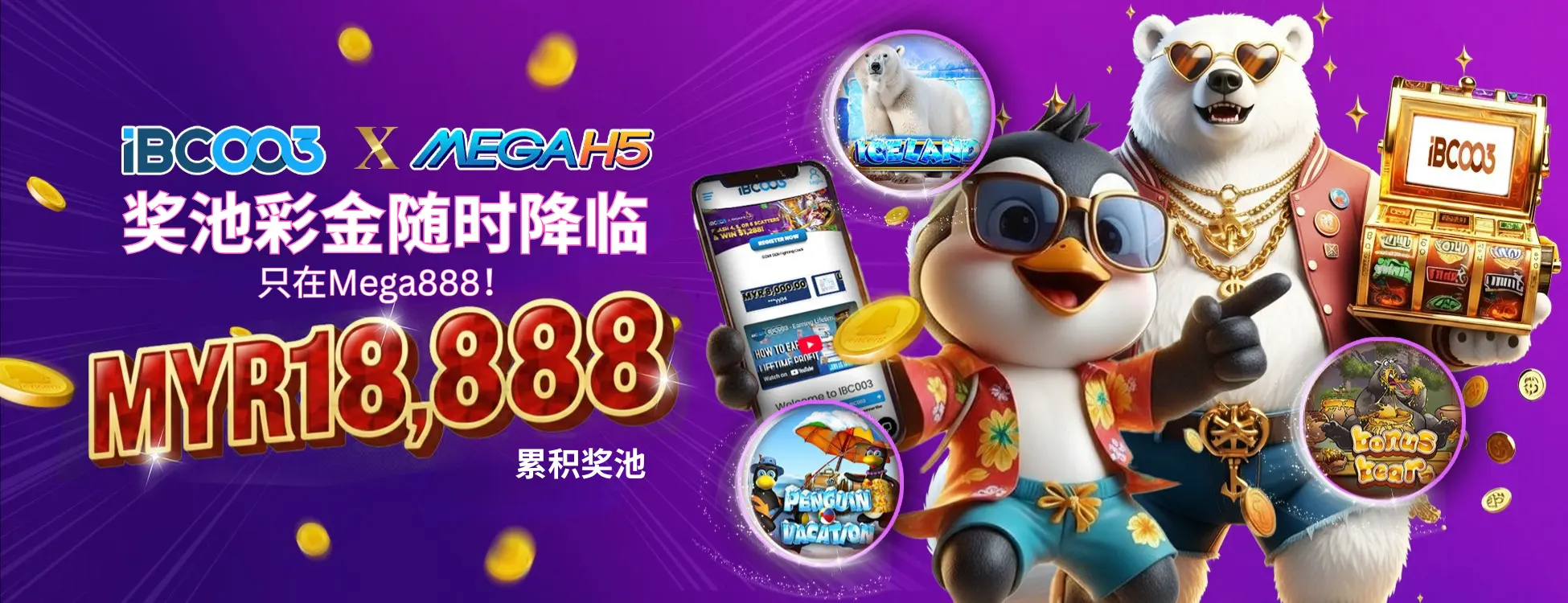 IBC003 拥有种类繁多的游戏,可帮助您根据个人喜好选择一款。如果您更喜欢马来西亚在线老虎机游戏,您将在此游戏门户中获得马来西亚最佳老虎机游戏。